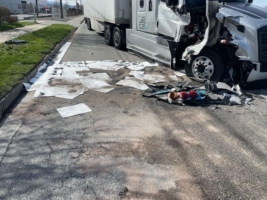 On April 1, 2022, Team Pro-Enviro responded to a call about a significant fuel spill. This was a serious accident involving a semi-truck and trailer and a bus, certainly no joke. When we arrived at the scene we discovered major damage to the fuel tank and a big mess to clean up. It was time to get to work.