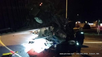Meanwhile, Pro-Tow was called to another cargo recovery nearby in Kent, WA. A load of fencing had shifted and nearly caused the semi-truck and trailer to overturn. We performed an emergency cargo recovery, reloading, and transported that load to a nearby trucking terminal.