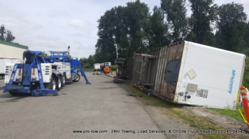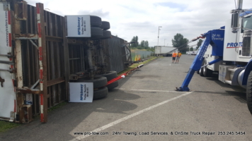 Team Pro-Enviro arrived at the scene promptly to help with the cargo spill. First, team Pro-Tow helped upright the truck. Once the vehicle was ready to go, we then reloaded the cargo. Handling these types of recoveries is something our team is happy to do. But understanding how a load can cause an accident is the first step to avoiding any trouble.