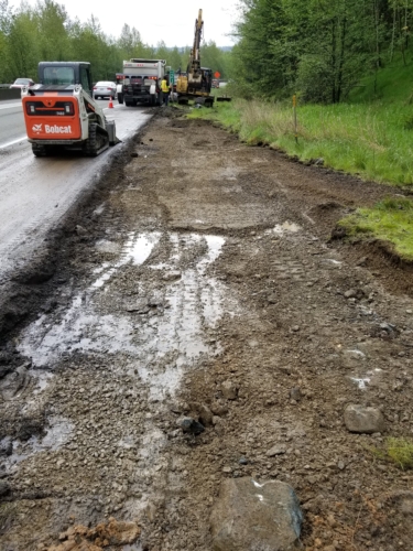 We performed an emergency frame fork tow truck hookup to the frame of the truck so our team could safely lift and secure it for towing. We drained all remaining fuel oil from the damaged tank. The Department of Ecology spill responder arrived at the scene to help with the scene assessment for a safe road and soil cleanup.
