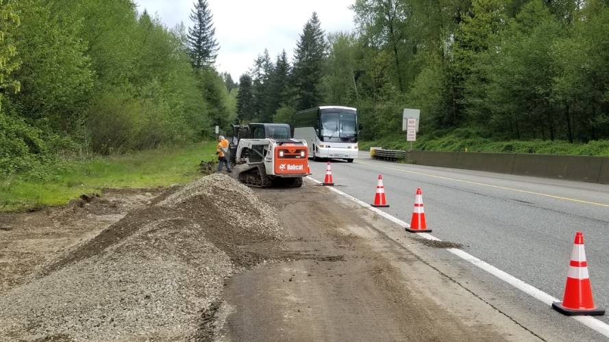 In this incident on 2018-05-05, we responded to a dispatch from Washington State Police 911 dispatch about a semi-truck and trailer involved in an accident at WB SR18 J/E of Hobart Issaquah Road. Our Pro-Tow division arrived quickly at the scene with two heavy-duty wreckers as required by Washington state law for towing a semi-truck and trailer.