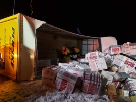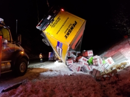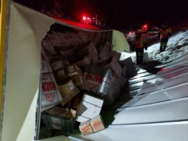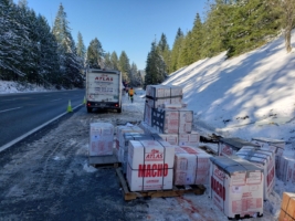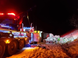 After that, our team focused on recovering the box truck packages. Unfortunately, the weight of the packages and the accident damage created some complications. Because of the damage to the roof of the international box truck, we had to do an emergency cargo unload in the freezing temperatures.