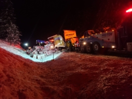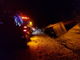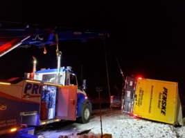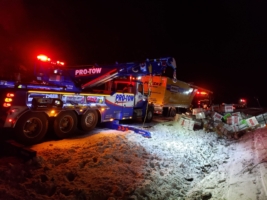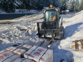 In this incident on February 6, 2019, Washington State Patrol called Team Pro-Enviro to help with a significant box truck recovery. While on route with an international box truck destined for the Philippines, the driver hit a 6-point bull elk and lost control near Preston, WA. Unfortunately, the elk didn’t survive, and while the driver was okay, the accident left them stranded in snowy and icy temperatures.