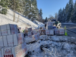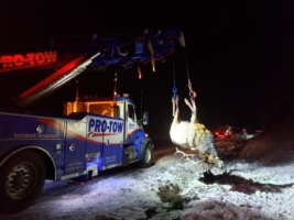 We arrived quickly at the scene and put together a cargo load recovery plan. First, the body of the elk was salvaged as per the salvage program that came into law in July 2016.