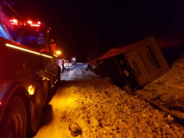 In this incident on February 6, 2019, Washington State Patrol called Team Pro-Enviro to help with a significant box truck recovery. While on route with an international box truck destined for the Philippines, the driver hit a 6-point bull elk and lost control near Preston, WA. Unfortunately, the elk didn’t survive, and while the driver was okay, the accident left them stranded in snowy and icy temperatures.