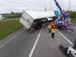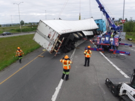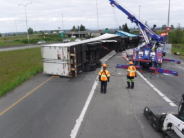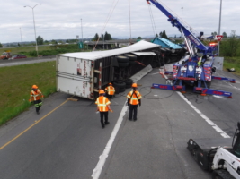 On May 2, 2019, Team Pro-Tow was called to a semi-truck accident near Auburn, WA. The truck had overturned, and its trailer was carrying a whole load of steel that weighed more than 70,000 lbs. This wreck would be a challenging semi-truck accident recovery.