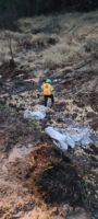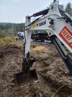 We cleared the soil from around the equipment and placed absorbent pillows to contain the fluid to avoid further contamination. The pictures didn’t show that the ditch containing the potatoes was 10 feet deep and 20 feet away from the roadway. There was also a lot of mud and parts of the vehicle scattered in the area to top it off.