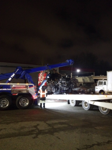 A semi-tractor and trailer caught on fire on the I-90 near Issaquah, WA on March 7, 2020. Both Team Pro-Enviro and Pro-Tow were called to the scene to tow the smoked-out tractor and trailer and perform full accident and spill recovery. Because the truck was on fire, there were burned truck parts, debris, and other harmful contaminants on the roadway.