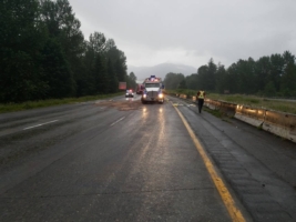 In this incident, on June 16, 2020, Team Pro-Enviro received an emergency dispatch about an out-of-area semi-truck collision near North Bend, WA. It needed both heavy truck towing and extensive spill recovery. Washington State Patrol (WSP) specifically requested a heavy-duty wrecker to remove a truck and trailer blocking the roadway. We dispatched one heavy-duty crane-style wrecker and one heavy-duty recovery wrecker to be extra safe. Our team then set out.