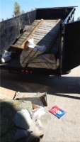 From there, we then began the accident debris cleanup from the damaged fence, smashed trees, and additional property damage. We loaded these into the dump trailer and finished this recovery.
