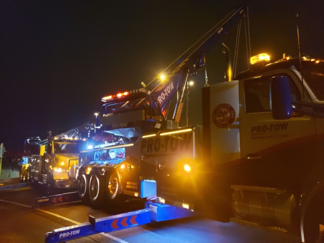 Our team filled out all the necessary paperwork and received the all-clear. Pro-Tow meanwhile took the loaded tractor and trailer to the storage yard.