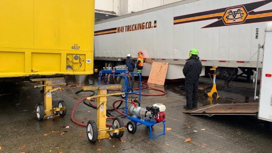 In this incident, on November 17, 2020, Team Pro-Enviro got a call for a load shift service in Kent, WA. A trailer loaded with tiles was damaged and needed help. Once we got to the scene, our team put together a game plan for the safest, most efficient load shift and load recovery.