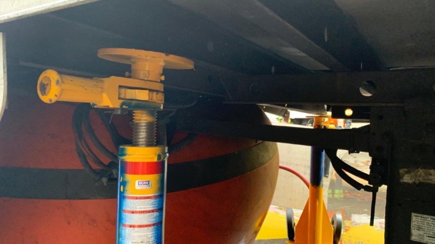 The operator positioned the rotator for the load shift. We used straps to support the load with four plywood sheets in between the straps to disperse pressure on the tiles during tightening. Once we got the load upright, drivers untarped it, inspected it for damages, and provided options for removal and restock of the product.