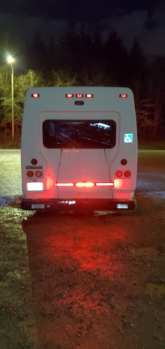 We then continued to a safer location on Tiger Mountain to properly finish the bus accident recovery. Using safety chains, we secured the bus casualty, and we could and set up safety tow lights. To avoid the risk of more debris falling off the bus casualty and risking other drivers’ safety, we drove back very slowly. Back at the yard, we put the bus in a portable parking stall to prevent any spread of contaminants and more spill cleanup.