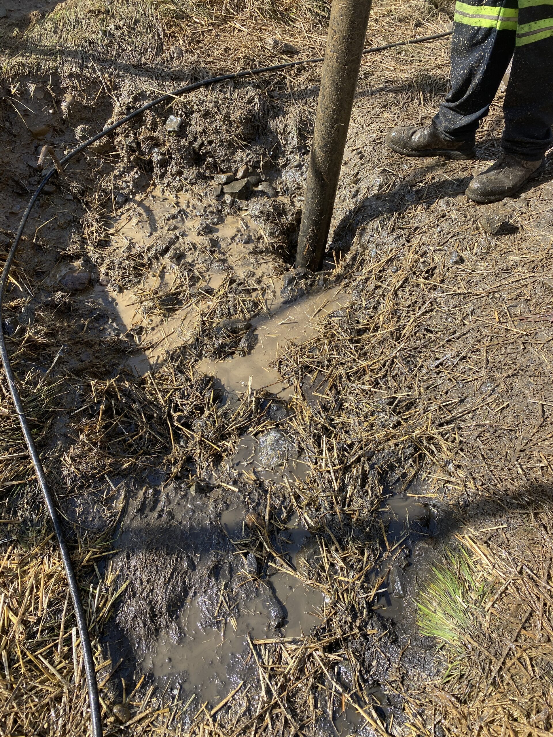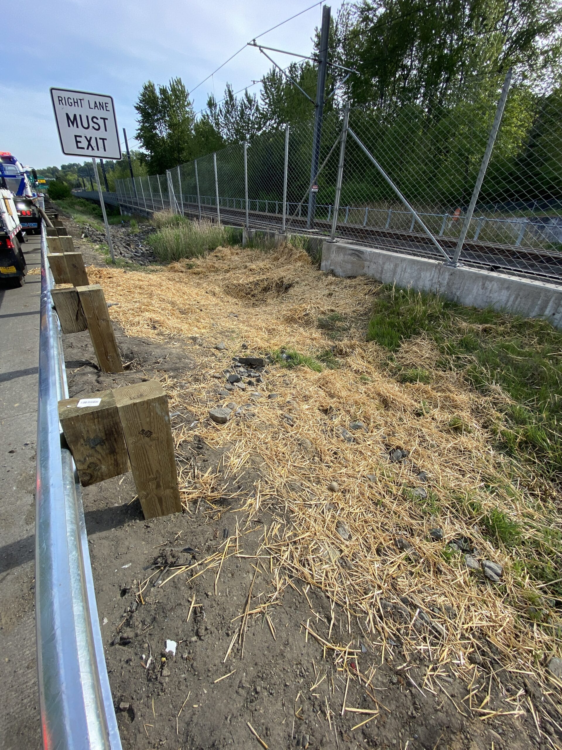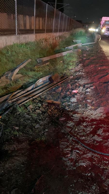 We arrived at the scene and evaluated the scene to find that the tractor was rammed into a concrete barrier. We found that engine oil pan was damaged and spilled 10 to 15 gallons of engine oil on the surface. Unfortunately, the casualty was precariously resting against the damaged guard rail with a fuel tank penetration. So that was a potentially big problem that required special care.