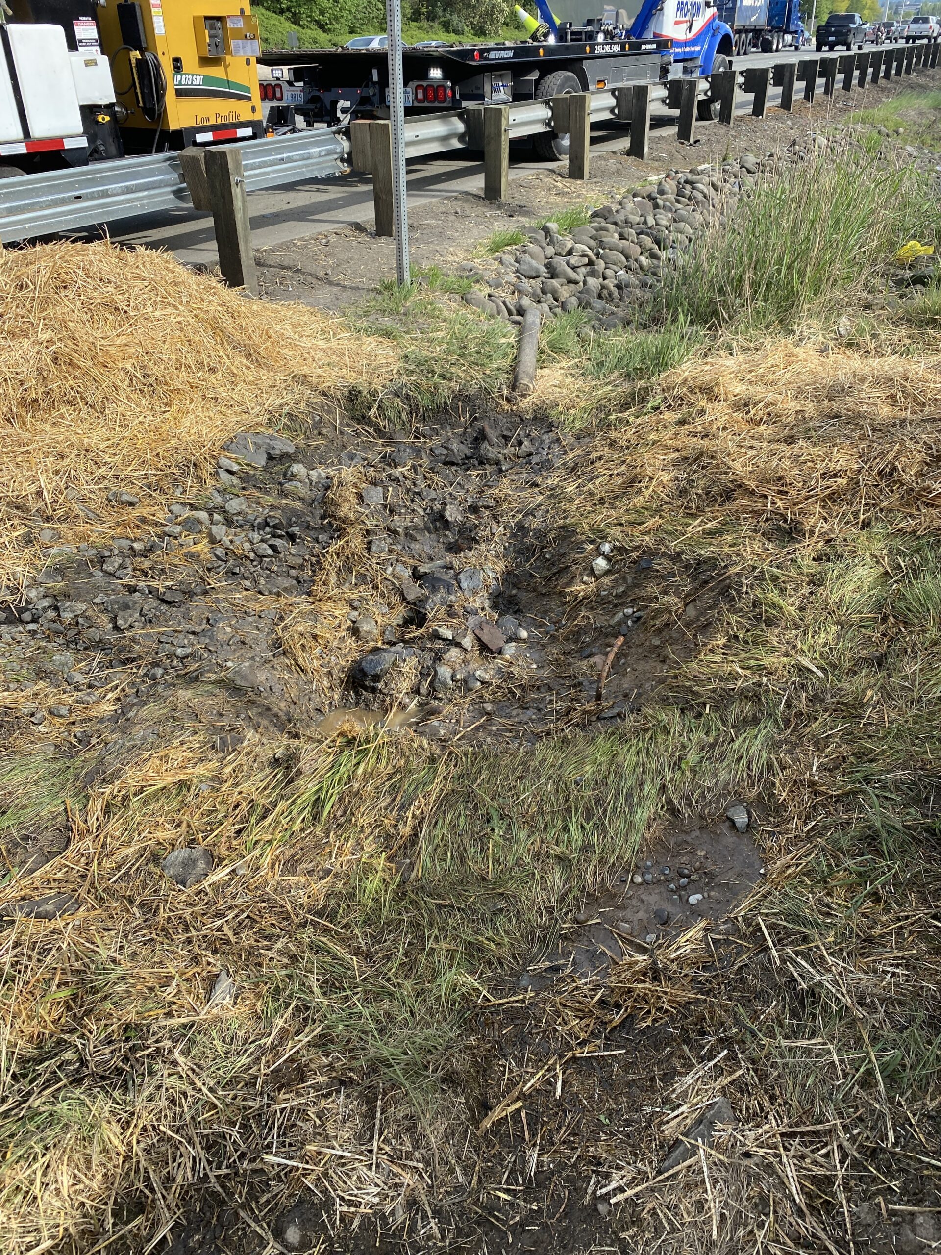 The next step was handling the spill and debris cleanup and reporting to the command post. Meanwhile, WSP informed the Washington State Department of Ecology about the cleanup required. After, we did a minimal debris cleanup, evaluated the property damage, and dispatched additional equipment for the rest of the work. Finally, we returned the casualty to our secured storage and did a post-accident commercial vehicle inspection. All equipment was inspected and returned to its original condition and location, and the call was cleared.