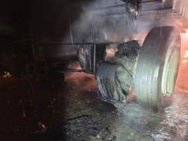 Unfortunately, the tires of the vehicle were burnt up and extremely damaged in the fire. Seeing that we needed more help, we called for additional support with the trailer fire recovery and cleanup required afterwards. Along with the damaged trailer, debris was all over the road and needed extensive cleanup.