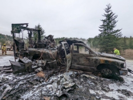 In this incident, on February 9, 2022, a camper on a pickup truck caught fire near Issaquah, resulting in both the camper and the truck catching fire. The fire damage was extensive. Additionally, it required detailed cleanup for the damaged vehicle and the surrounding area. Team Pro-Enviro and Team Pro-Tow arrived to clean up and recover the scene.