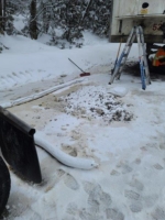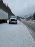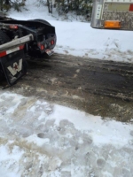 Meanwhile, the refrigerated trailer was no longer keeping things cold! It suffered electrical line damage from the snow chain and needed an electrical fix and cargo load recovery. Team Pro-Tow got to work under the trailer to fix the electrical connection to the fridge so we could save the valuable beef.