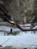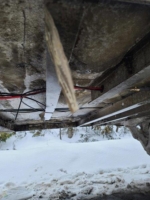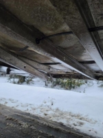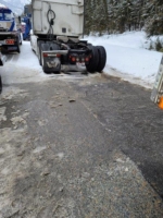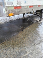 On February 26th, 2021, Team Pro-Enviro was involved in a recovery that required ingenuity, expertise and a comprehensive recovery plan. A truck hauling a refrigerated trailer-load of beef blew a snow chain. The chain flew and badly damaged the fuel tank and trailer electrical lines. In addition, it caused structural damage to the trailer.
