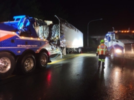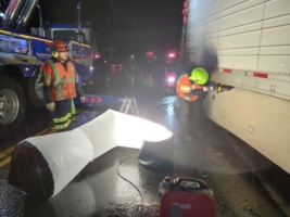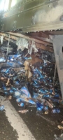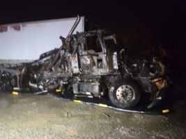 In this incident, on November 29, 2021, a truck and trailer carrying a full load of ice cream caught fire and burnt up. The boxes of ice cream and the melted ice cream ended up all over the road.